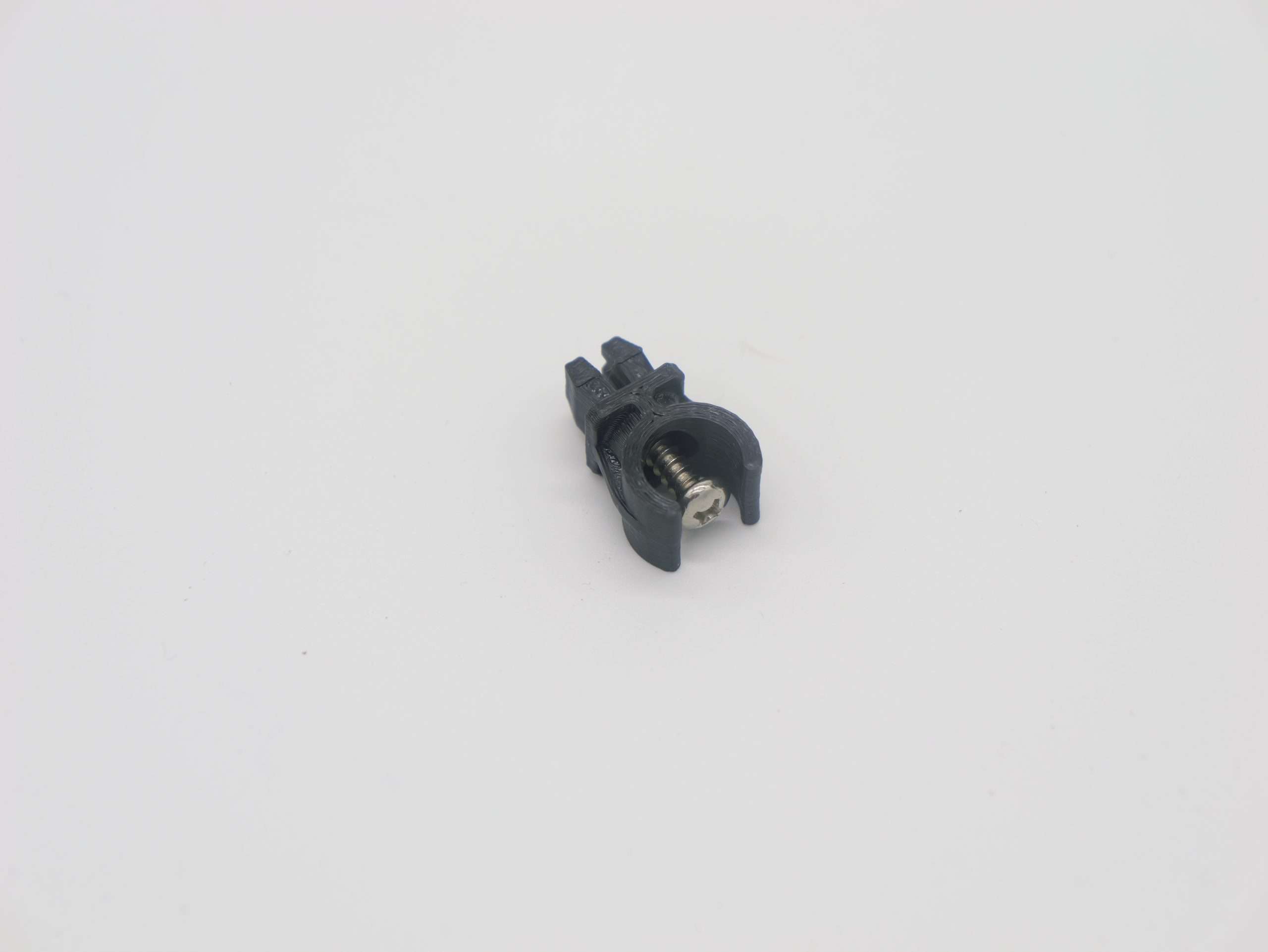 Beim Original wird der Clip durch einen Kunststoffstift gespreizt, wir verwenden eine kleine Edelstahlschraube, so lässt sich der Clip bei Bedarf problemlos entfernen.