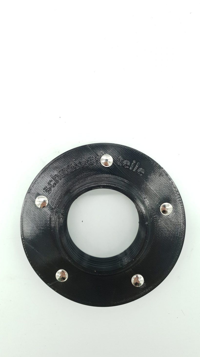 Vor dem hinteren Kardanlager sitzt ab Werk dieser Schmutzabweiser um das Lager vor grobem Dreck zu schützen. Allerdings löst sich das Gummi, aus dem der Schmutzabweiser gefertigt ist, im Alter auf. Daher produzieren wir diese Abweiser im 3D-Druckverfahren nach. Aus technischen Gründen wird der Abweiser aus 2 Teilen gefertigt und anschließend vernietet. Unser Abweiser ist etwa 5mm größer im Durchmesser und passt damit hervorragend zu unseren Kardanlagern. Natürlich passt er so auch vor die originalen Lager.